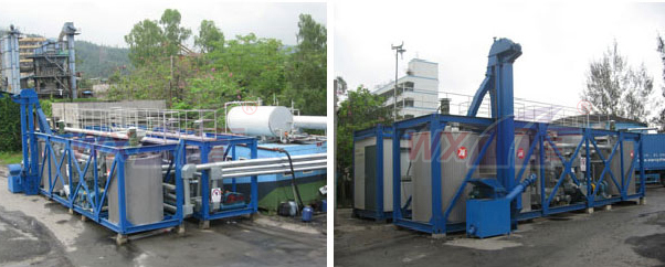設(shè)備名稱:移動式改性瀝青設(shè)備 設(shè)備型號:HT-GSY-20 核定生產(chǎn)率:20t/h(標(biāo)準(zhǔn)工控下) 工作電壓:380V/50HZ 適用生產(chǎn)類型:現(xiàn)場對接式生產(chǎn) 外型尺寸(長×寬×高):10.8m×2.2m×2.5m 控制室:3m×2.2m×2.5m 設(shè)備特點(diǎn):采用框架式結(jié)構(gòu),運(yùn)輸方便,適合與拌合樓現(xiàn)場對接生產(chǎn)使用。 適用范圍:能生產(chǎn)SBS、SBR、MAC、PE、EVA等類型的改性瀝青,所生產(chǎn)的SBS改性瀝青產(chǎn)品符合JTGF40-2004標(biāo)準(zhǔn)。