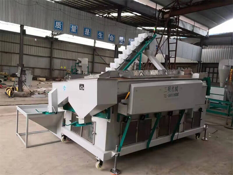 比重精選機(jī)主要是根據(jù)外形尺寸相近的物料比重差異達(dá)到分選的效果。通過調(diào)整風(fēng)量和振動頻率,在摩擦力的作用下實(shí)現(xiàn)分類??捎行コ锪现械难苛!⒚棺?、蟲蛀等,可以對堅(jiān)果炒貨物料殼仁有效分類